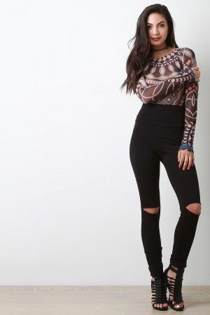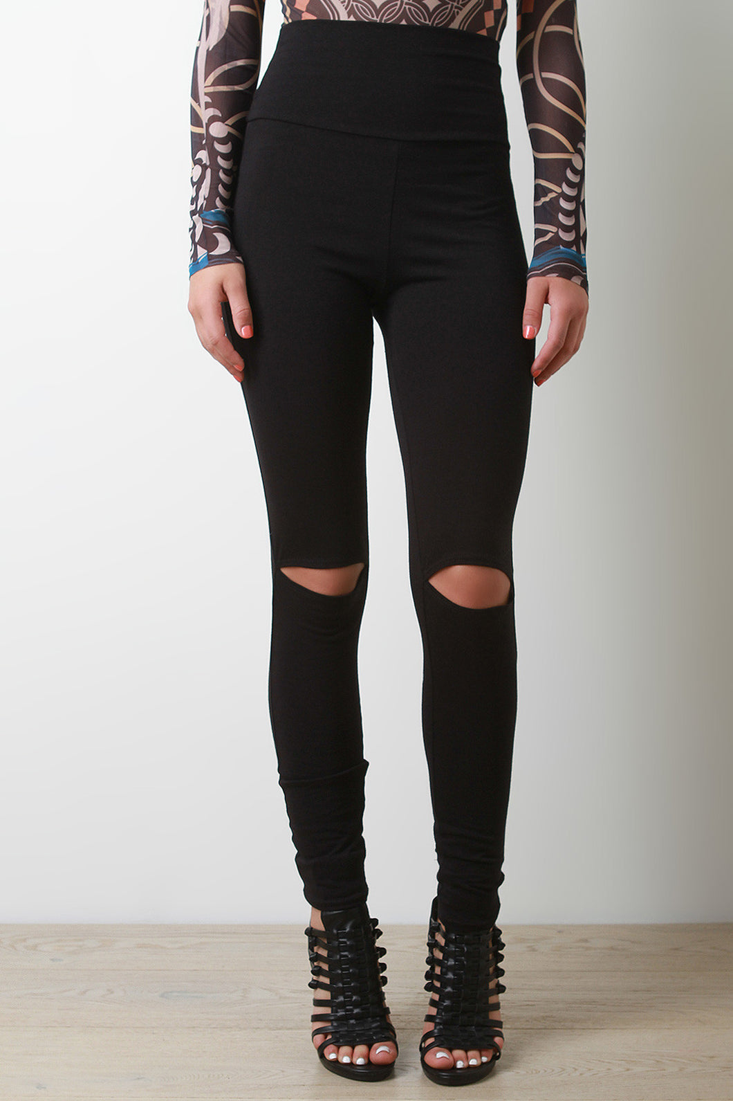 These leggings feature a jersey knit fabrication, high waistline, wide waistband, knee slits and finished with taper cut legs. Accessories sold separately. Made in U.S.A. 95% Cotton, 5% Lycra.