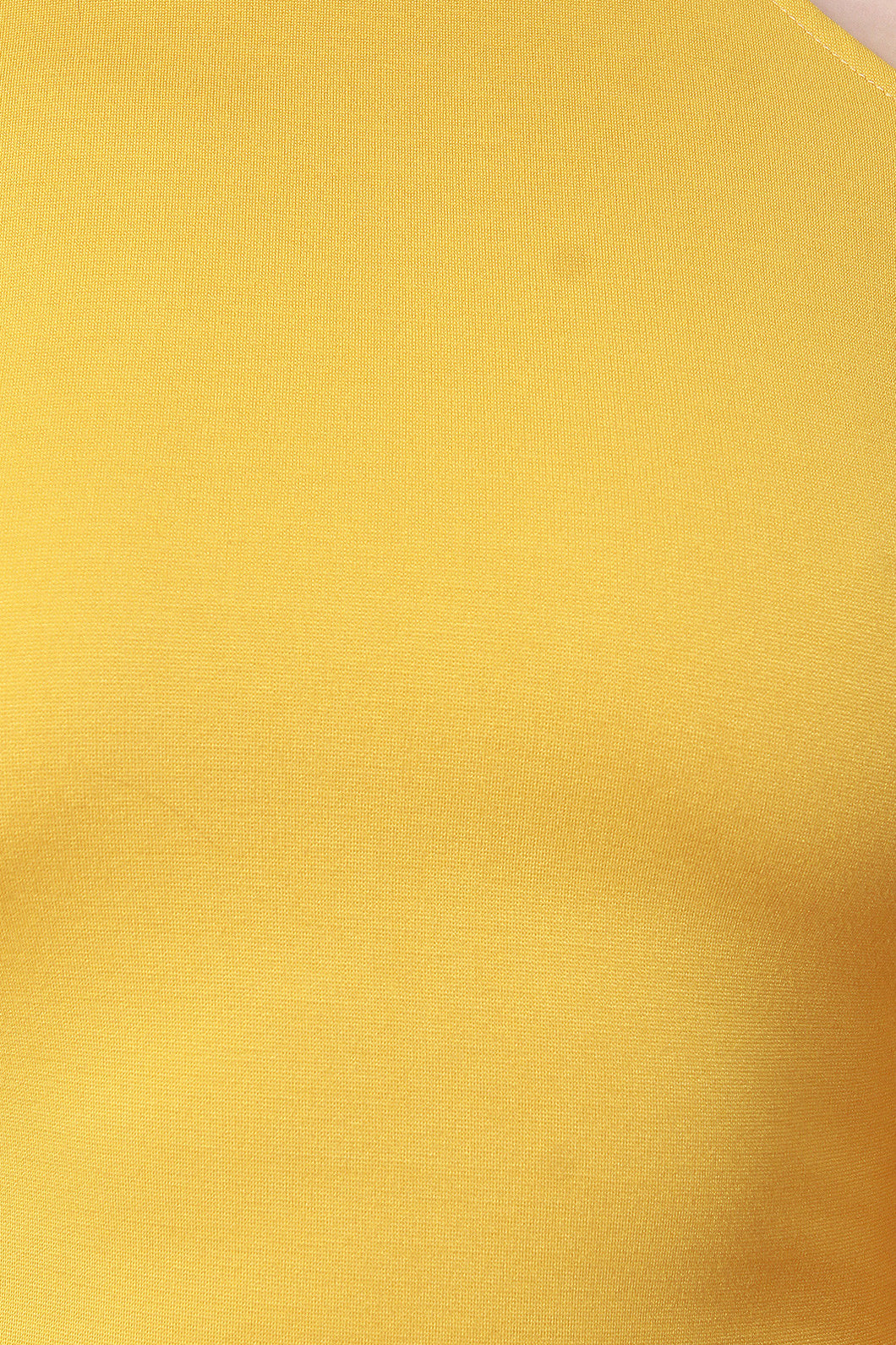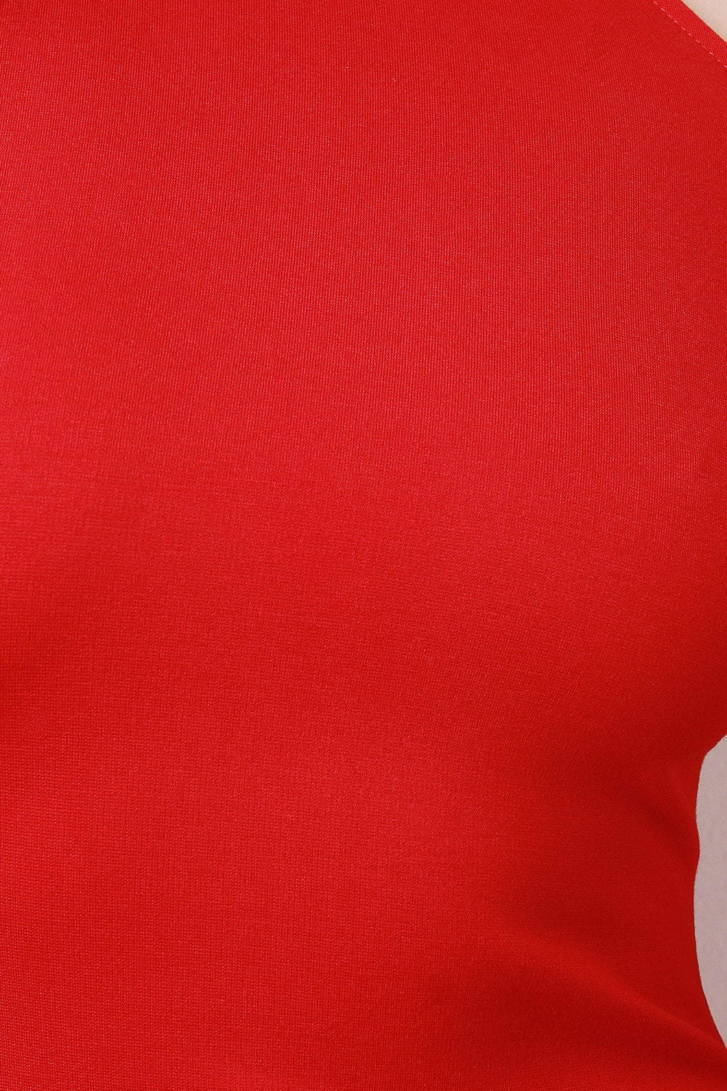 This bodycon dress features a stretchy knit fabrication, mock neckline, one cold shoulder design, and long sleeves. Finished with a midi-length hemline and a back zipper closure. Accessories sold separately. Made in U.S.A. 62% Viscose, 33% Nylon, 5% Spandex.