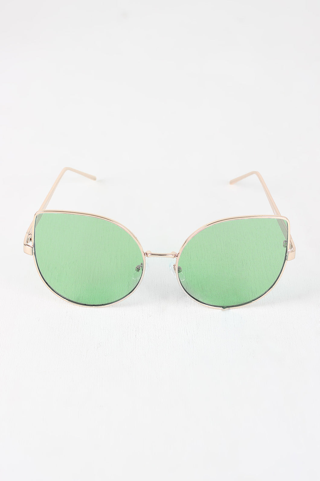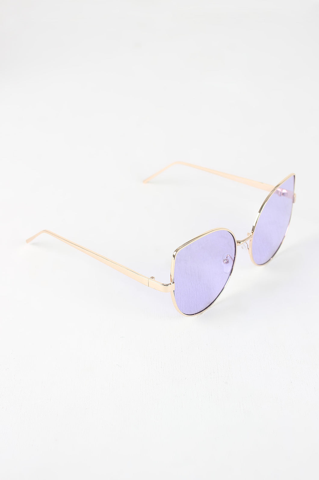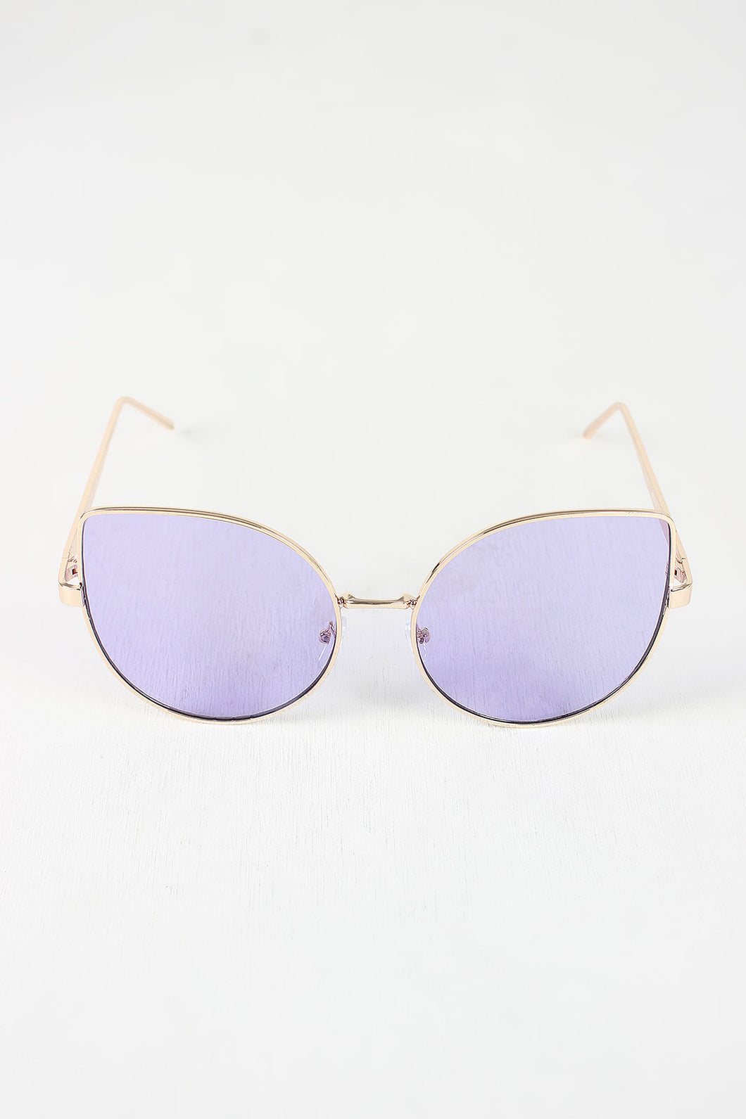These trendy sunglasses have wire frames, cat eye shaped lenses, single bridge and nose pads for comfort.